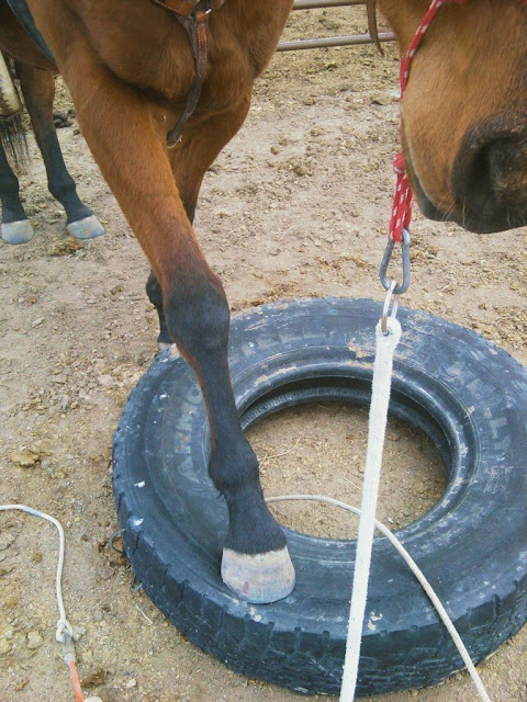 Onto the tire she offered immediately to put her foot on it and then put weight into the tire even when it squished a little! Lots of licking and chewing here! :)